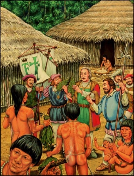 In 1492 Christopher Columbus discovered the new world. During his first contact with the Taino Indians (indigenous tribes that inhabited the Caribbean islands), he noticed, as he described on his navigational diary #85, transcribed by Spanish historian Bartolome de las Casas, to have seen these indigenous with a “tizon” (Like a branding iron) in their hands, made of dry leaves (buncher), and wrapped in other dry leaves (Wrapper) in the shape of a musket, lit on one end, and sucking from the other end, inhaling the smoke. This object, wrote Columbus, we will name the same as the Taino called them, “Tabaco”. These leaves were given to Columbus as valuable gifts, among others, like gold, spices, exotic fruit, etc., on his return trip, to be presented to the Queen of Spain as proof that he had discovered the new world. It wasn’t until their later voyages that Spaniards discovered that the Taino Indians smoked for pleasure, but most importantly, for religious purposes. The tobacco had a powerful spiritual meaning, and through a ceremony called “The Rite of Cohoba” (The Rite of Tobacco), it played a major roll on the social and economic structure of the aboriginal Taino tribes.